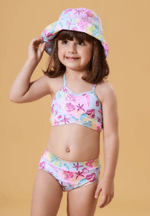 Perfeito para os mergulhos e as brincadeiras na areia, o conjunto une o conforto que sua filha precisa com o estilo que encanta. A modelagem pensada para o movimento garante que a única preocupação seja a próxima onda. No tamanho 1 ao 3.