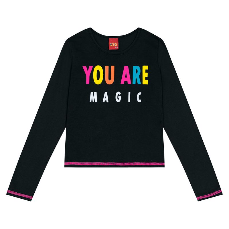 BLUSA FEMININA INVERNO 2024. Blusa feminina meia malha, manga longa, decote redondo e estampa com relevo e gel. Frase; " YOU ERE MAGIC" Marca: Kyly