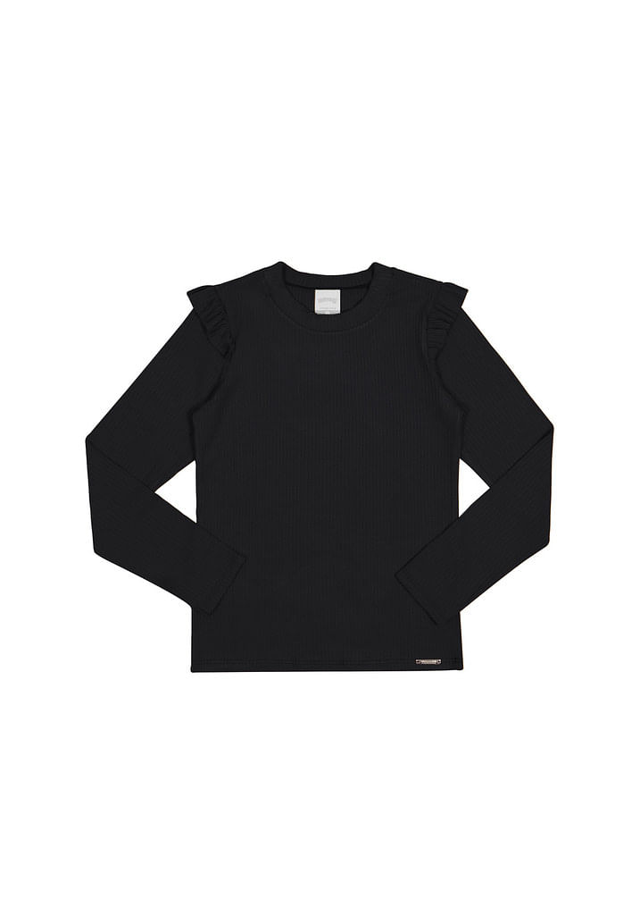 Transforme o dia das meninas em uma explosão de estilo e conforto com essa blusa canelada básica. Ela é macia e vai garantir que o dia a dia seja ainda mais divertido, principalmente porque traz um detalhe fofo de babado nos ombros. Com uma saia ou shorts colorido, o visual fica incrível. Confeccionada em Malha Canelado Sevilha: malha de viscose com gramatura média toque macio, elasticidade e textura canelada, Modelagem justa ao corpo, Mangas longas, Decote redondo, Babado sobreposto nas cavas.