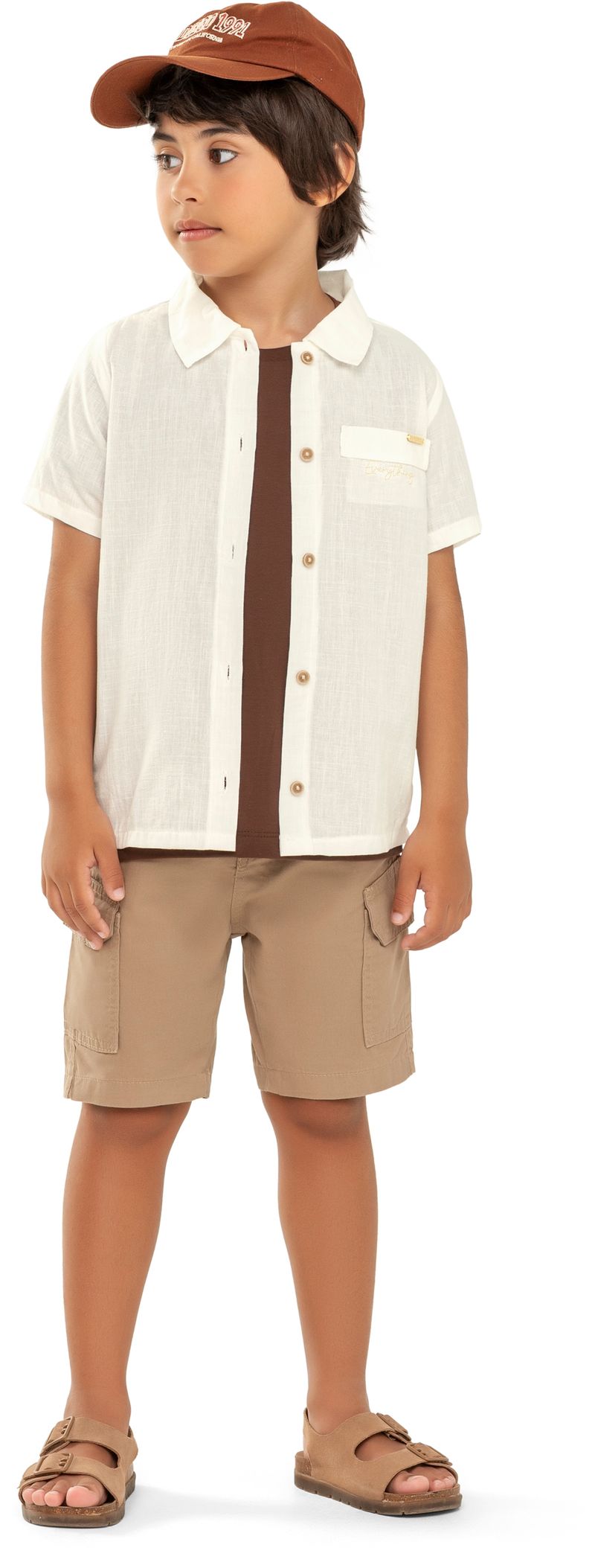 Camisa Infantil Angerô, tamanho 10 ao 16, confeccionada em linho leve na elegante tonalidade marrom claro. Este tecido respirável proporciona conforto e frescor, ideal para os dias mais quentes. Com um design clássico e sofisticado, esta camisa é perfeita para ocasiões especiais ou para o uso diário, garantindo que seu pequeno esteja sempre estiloso e à vontade.
