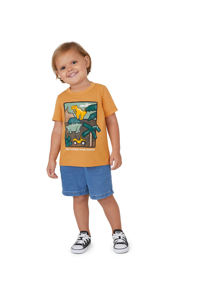 Cheia de estilo e diversão, a blusa infantil masculina com estampa de dinossauro e carro é perfeita para os pequenos exploradores! Com um visual moderno e super divertido, ela une os dois temas que as crianças mais amam em uma só peça.Confeccionada em tecido leve e confortável, é ideal para o dia a dia, garantindo liberdade de movimento para brincar, correr e se divertir. A estampa colorida e criativa desperta a imaginação e traz um toque de personalidade ao look. No tamanho 1 ao 3