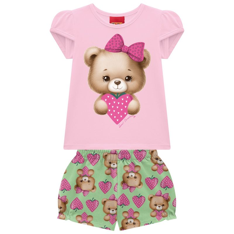 Conjunto Infantil Feminino com estampa de corações da Kyly. Este conjunto, tamanho 1, é perfeito ele proporciona uma sensação suave e aconchegante. Feito com materiais de alta qualidade, garante durabilidade e conforto, enquanto o design adorável com ursos traz um toque lúdico ao guarda-roupa da sua pequena.