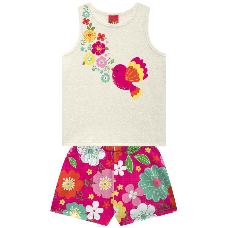 Um charme em cada detalhe! O conjunto infantil menina Kyly é sinônimo de conforto, alegria e muito estilo para os dias de diversão. A regata, confeccionada em meia malha 100% algodão, é macia, leve e respirável, ideal para acompanhar as brincadeiras. Sua modelagem soltinha e confortável proporciona liberdade de movimento, e o acabamento reforçado nas cavas e no decote garante durabilidade e ótimo caimento. A estampa divertida e colorida, cria um visual alegre e moderno.