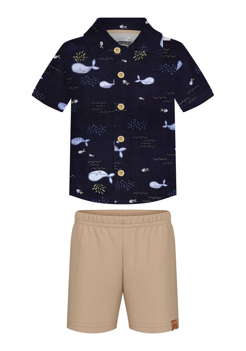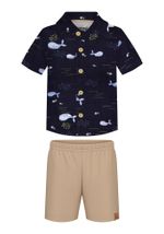 Prepare seu pequeno explorador para o verão com este conjunto adorável e cheio de personalidade! A combinação de camisa estampada e shorts liso é a escolha perfeita para festas de aniversário, batizados ou para um passeio à beira-mar. Tamanho 2 ao 3.