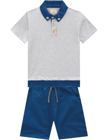 Conjunto Infantil Masculino Milon é composto por Polo em Meia Malha e Bermuda em sarja leve. A Polo Infantil Masculina Milon possui modelagem tradicional. A Bermuda Infantil Masculina Milon possui bolsos frontais, barra dobrada e cadarço para amarração.