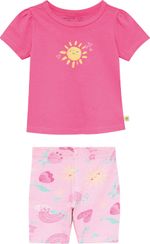 O Conjunto Bebê Menina Estampa Glitter Solzinho em Algodão da Malwee Kids é perfeito para trazer conforto e charme para o dia a dia das bebês. Com blusa delicada e bermuda colorida, o conjunto alia tecido macio e estampa com glitter, adicionando brilho e diversão ao visual.