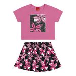 O Conjunto Infantil Menina Kyly é produzido em meia malha, com composição de 100% algodão. A blusa destaca-se pelo bordado com lantejoulas sublimadas, trazendo um charme especial. O decote redondo possui acabamento em debrum, e as mangas com ombro estendido e a barra têm acabamento em bainha. A saia apresenta estampa rotativa de flores, com cintura ajustada por elástico rebatido, babados com franzidos e barra com bainha. Este conjunto une conforto e estilo, perfeito para dias alegres e cheios de cor.