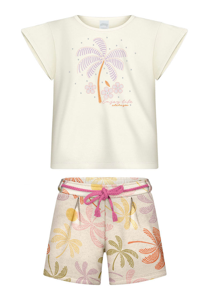 Conjunto Moletom Infantil da Lunender Alakazoo, disponível nos tamanhos 4 ao 10. Este conjunto encantador inclui uma blusa e um short com estampa de palmeiras, perfeito para os dias ensolarados. Confeccionado com materiais de alta qualidade, oferece conforto e liberdade de movimento, ideal para as brincadeiras e aventuras dos pequenos.