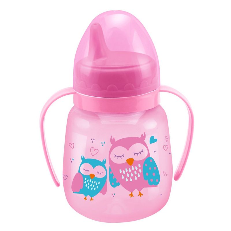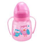Esse Copo com alça ajuda na transição das crianças de sairem da mamadeira e começarem a usar copo normal. Ele possui bocal largo, alça ergonômica removível, tampa, bico de silicone macio e sistema anti-vazamento. Comporta até 200ml e é livre de BPA.
