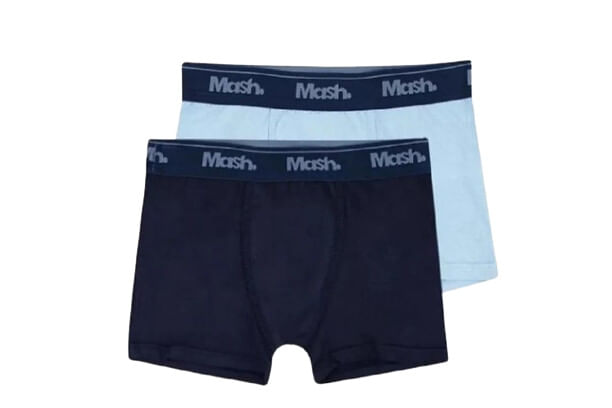 Cueca boxer infantil 100% algodão confeccionada com elástico repetitivo, padrão consagrado da Mash. Perfeita para fazer combinação "pai e filho" com a ref. 110.04. O Kit possui 2 cores básicas para o uso diário.