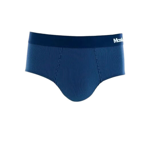 Cueca slip elástico aparente microfibra listrada.