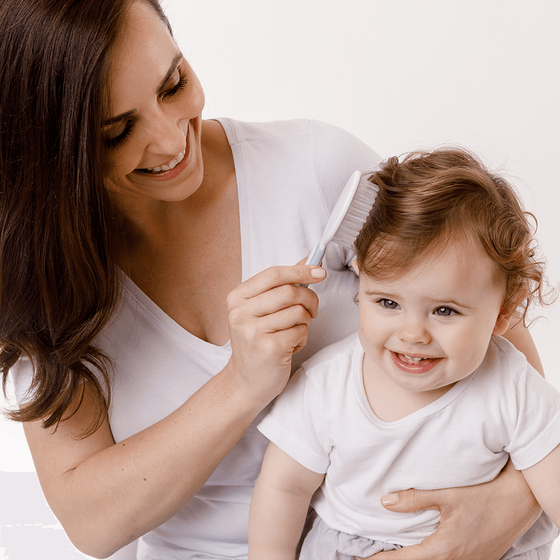 A escova tem cerdas macias e o pente tem as pontinhas arredondas, ideais para o couro cabeludo do pequeno.
