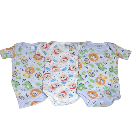 Kit body manga curta ideal para o verão, com estampas e Modelagem com golinha americana, feita para melhor vestir na hora de passar a cabeça do bebê pois possui um corte especial na altura dos ombros. Produzida em tecido de suedine penteado com estampas divertidas.