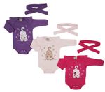 Kit contendo 3 body manga longa. Body com gola americana - ombros expansíveis que facilitam na hora da troca fecho entre as pernas em botão de pressão confeccionados em suedine penteado de alta qualidade.
