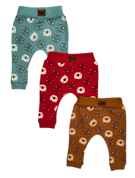 Deixe o seu bebê confortável e estiloso com esse lindo kit de culotes saruel sem pé! O kit contém 3 unidades com estampas divertidas de ursinhos, nas cores azul, vermelho e marrom. Feito com tecido macio e maleável, ideal para o dia a dia dos pequenos.