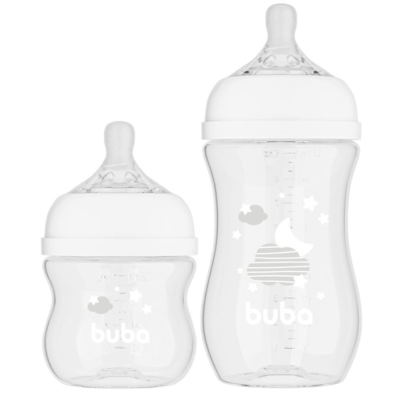 O Kit de Mamadeiras da Buba foi desenvolvido para proporcionar mais conforto, segurança e praticidade na alimentação do seu bebê desde os primeiros dias de vida. Composto por duas mamadeiras – uma de 120 ml (bico fluxo tamanho 1, indicado a partir de 0 meses) e outra de 270 ml (bico fluxo tamanho 2, indicado a partir de 2 meses) – o kit acompanha o crescimento do bebê com qualidade e carinho.