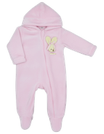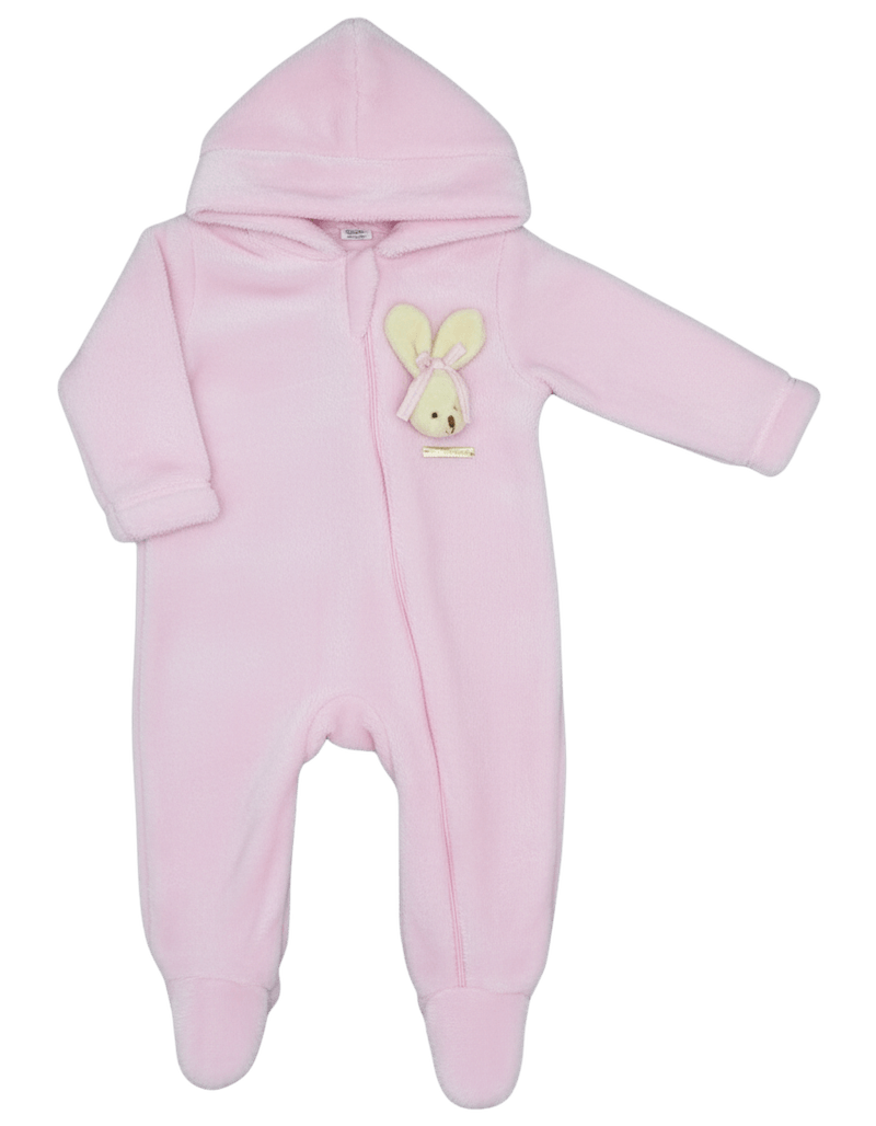 Conta com capuz e aplicação charmosa de coelhinha no peito, trazendo um visual encantador. O fechamento frontal com zíper facilita a troca de roupas, oferecendo mais praticidade no dia a dia.