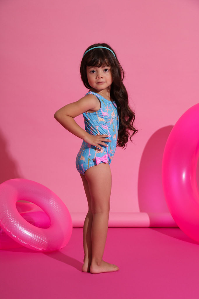Leve a diversão e a fofura para os dias de sol com o encantador maiô infantil da Everly, decorado com uma estampa adorável de girafas. Este maiô combina conforto, praticidade e um design alegre que vai fazer sua pequena brilhar à beira da piscina ou na praia.