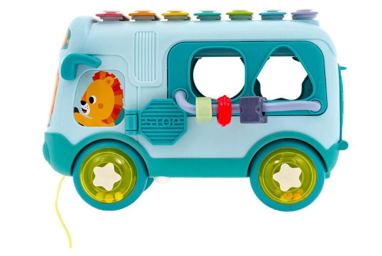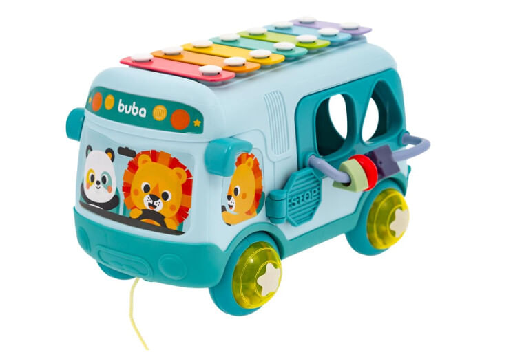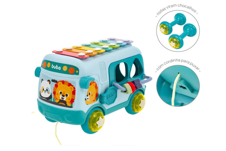Todas as paradas são de diversão a bordo do Ônibus da Buba! Dá pra simular uma viagem na companhia de personagens fofos, encaixar peças nas janelas de diversos formatos e até descobrir novos brinquedos. As rodas também são chocalhos e o teto é um xilofone!