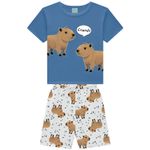 conjunto de pijama infantil masculino da Kyly, que inclui uma camiseta e um short adoráveis, estampados com um simpático urso. Confeccionado com materiais de alta qualidade, este conjunto é perfeito para garantir conforto e estilo durante as horas de descanso do seu pequeno. Disponível no tamanho 4 ao 8 , é ideal para crianças que buscam um visual divertido e aconchegante.