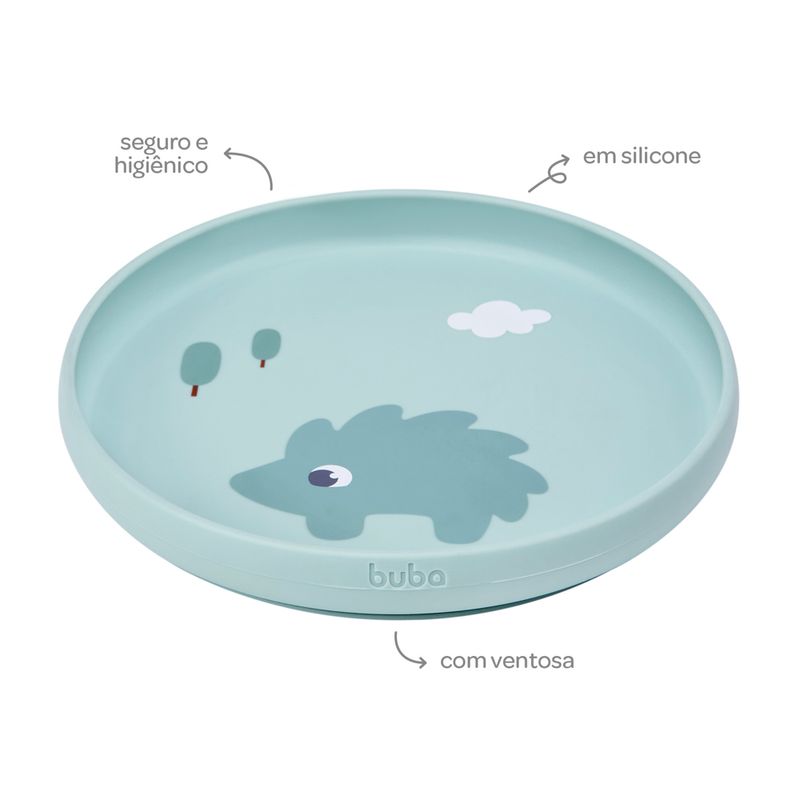 O pratinho em silicone da Buba possui ventosa que adere à superfície, evitando que o bebê derrube durante as refeições. Resistente, fácil de limpar e com estampa divertida, torna a hora de comer mais prática e agradável.