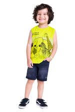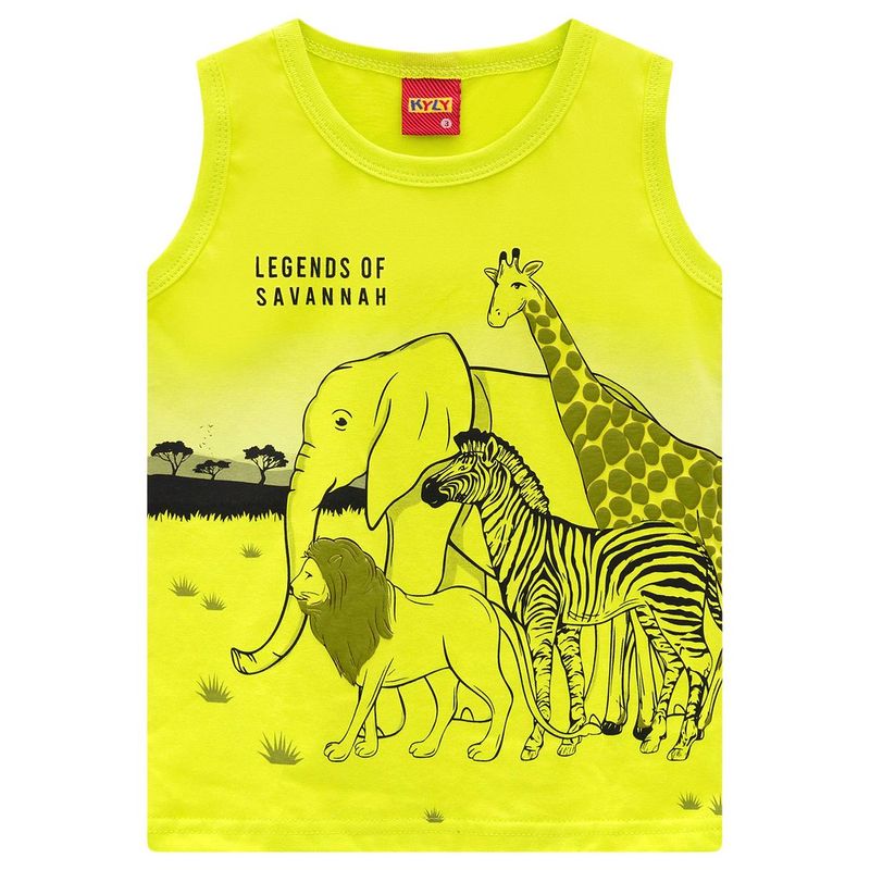 Regata Infantil Masculina Kyly confeccionada em Meia Malha, possui modelagem reta e acabamento no decote em gola redonda.