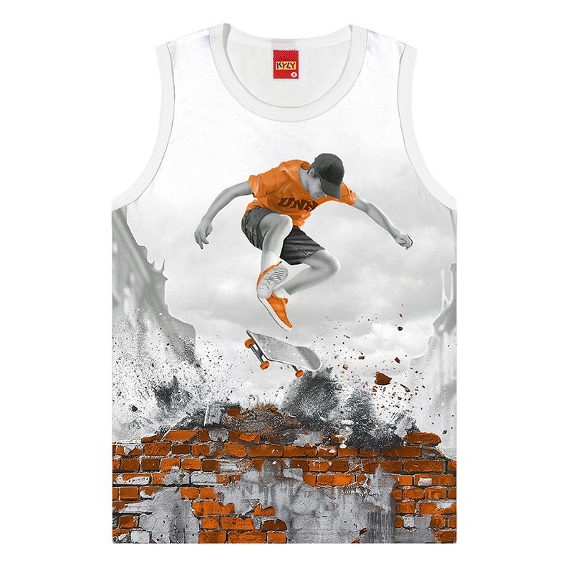 Aumente o estilo do guarda-roupa do seu pequeno com nossa incrível regata infantil inspirada no universo do skate! Perfeita para as crianças que adoram se aventurar, essa peça combina conforto e atitude.