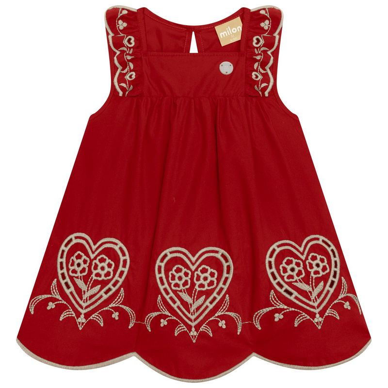Vestido Vermelho da Milon, uma peça adorável que combina estilo e conforto para as pequenas. Com delicados corações bordados nos ombros, este vestido traz um toque de charme e originalidade, perfeito para qualquer ocasião. Disponível no tamanho 6A a 24M, ele vem acompanhado de uma calcinha, garantindo praticidade e conforto. Ideal para festas, passeios ou momentos especiais, este vestido é a escolha perfeita para deixar sua menina ainda mais linda.