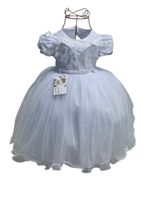 Vestido vem com aplique de florzinhas, com passadeira de cinto de strass, broche com um laço grande e elegante. Ideal Para festas e batizados.