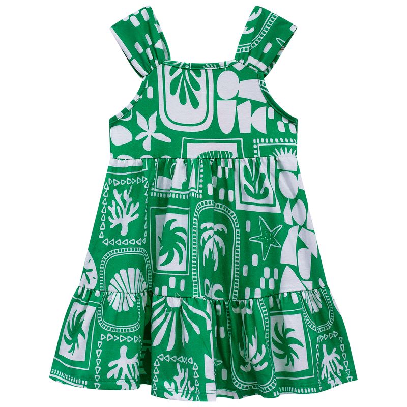 Vestido Feminino Infantil da Nanai, disponível nos tamanhos 4 ao 8. Com um vibrante tom de verde e um delicado estampa tropical em branco e verde, este vestido é perfeito para ocasiões especiais ou para um dia divertido no parque. Confeccionado com materiais de alta qualidade, ele proporciona conforto e liberdade de movimento, permitindo que sua pequena brilhe com estilo e elegância.