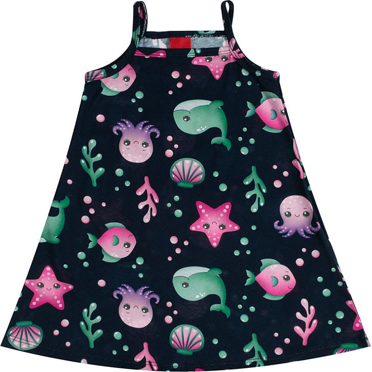 O encantador Vestido Feminino Infantil da Kyly, disponível nos tamanhos 4 ao 8 . Com um design vibrante que apresenta um adorável polvo, uma majestosa baleia e estrelas do mar, este vestido é perfeito para pequenas exploradoras do mundo marinho. Confeccionado com materiais de alta qualidade, proporciona conforto e liberdade de movimento, ideal para brincadeiras e aventuras.