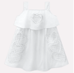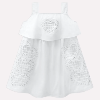 A modelagem traz alças largas e confortáveis, decote reto e recorte franzido na cintura, proporcionando caimento soltinho e fluido. Já a saia ganha ainda mais charme com os corações bordados em destaque, que se repetem harmoniosamente, criando um visual único e cheio de personalidade. Uma peça que une conforto, elegância e o brilho especial que toda menina merece para celebrar momentos inesquecíveis.