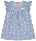 Ao vesti-la neste tom Azul Sereno, que remete à calma e ao céu, você a prepara para um dia de descobertas e sorrisos. A suavidade do tecido é pensada para acompanhar a leveza dos seus movimentos, permitindo que ela engatinhe e dê os primeiros passos com total liberdade. A delicada estampa de corações espalhados pelo vestido celebra o amor incondicional e a doçura da primeira infância. As manguinhas em babado acrescentam um charme especial, tornando cada momento — de um passeio no parque a uma foto de família — inesquecível.